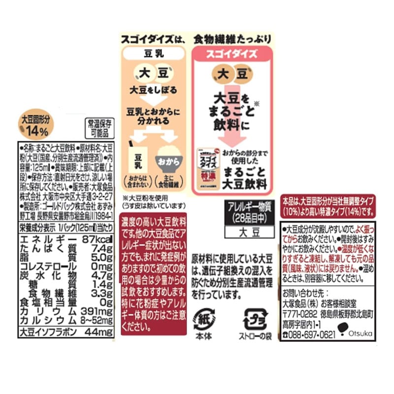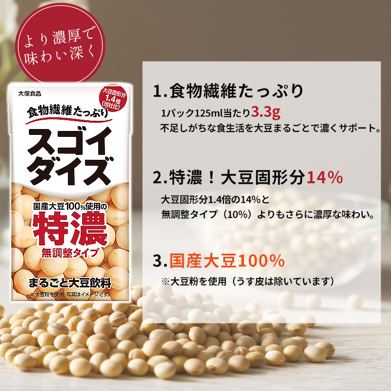 - 大塚食品 スゴイダイズ 特濃 無調整タイプ 125ml 48本(24本×2ケース)