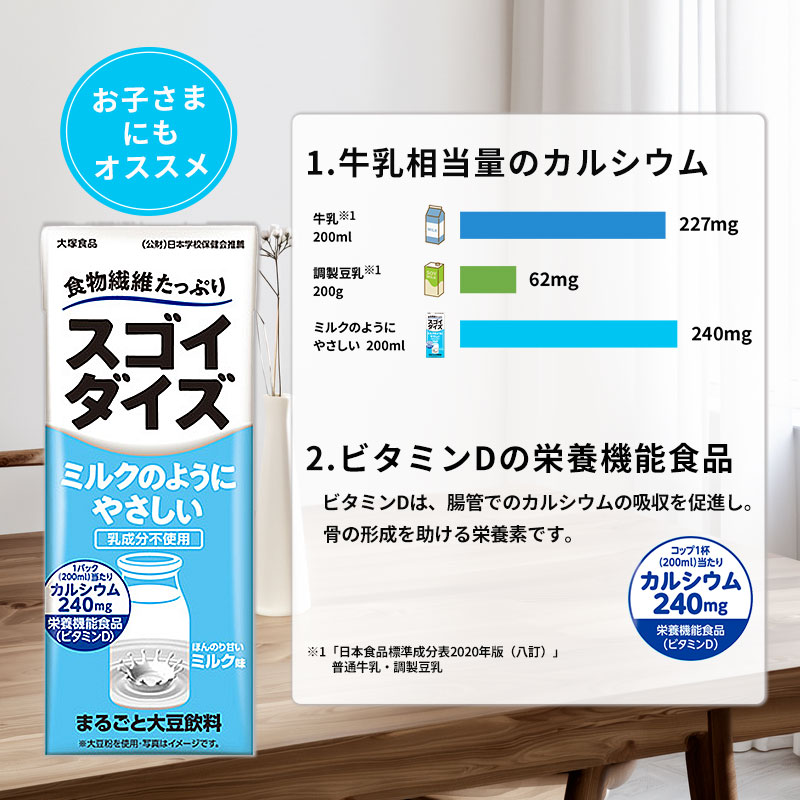 【賞味期限間近・200ml×48本】スゴイダイズ ミルクのようにやさしい ミルク味24本入×2ケース | 乳成分不使用。ほんのり甘いミルク味。まるごと大豆飲料にカルシウムをプラス 食物繊維たっぷり