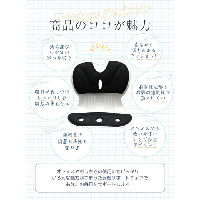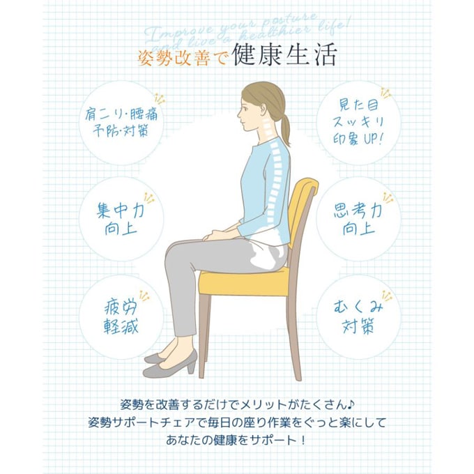 - 美姿勢サポートチェア 折り畳式 耐荷重100kg