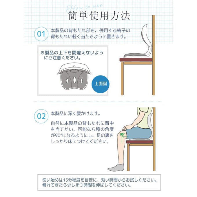(背もたれが無い椅子、座面が本製品より小さい椅子、不安定な椅子、車・電車・飛行機などの座席、柔らかい椅子、座ったときに足がつかない椅子)