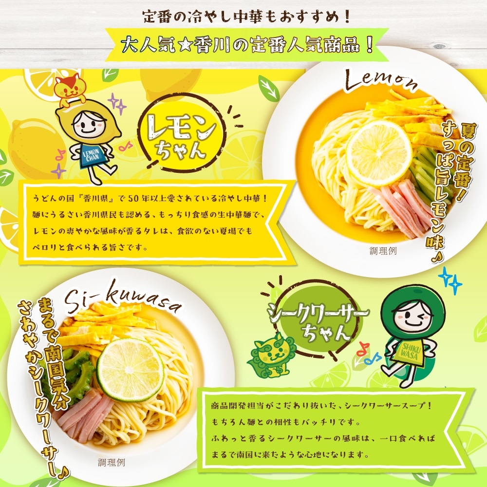 <シンプル百科>【5食】冷やし中華アソート1 | レモンちゃんにシークワーサーちゃん、うめねぇちゃん、毎日の食卓に「美味しい!」をお届け