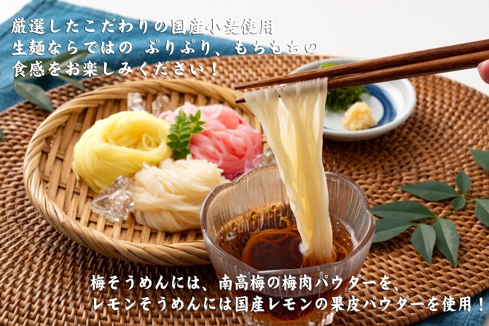 【レモンそうめん】小麦粉(国内製造)、食塩、レモン果汁、レモン果皮のパウダー/酒精、pH調整剤、ビタミンB2