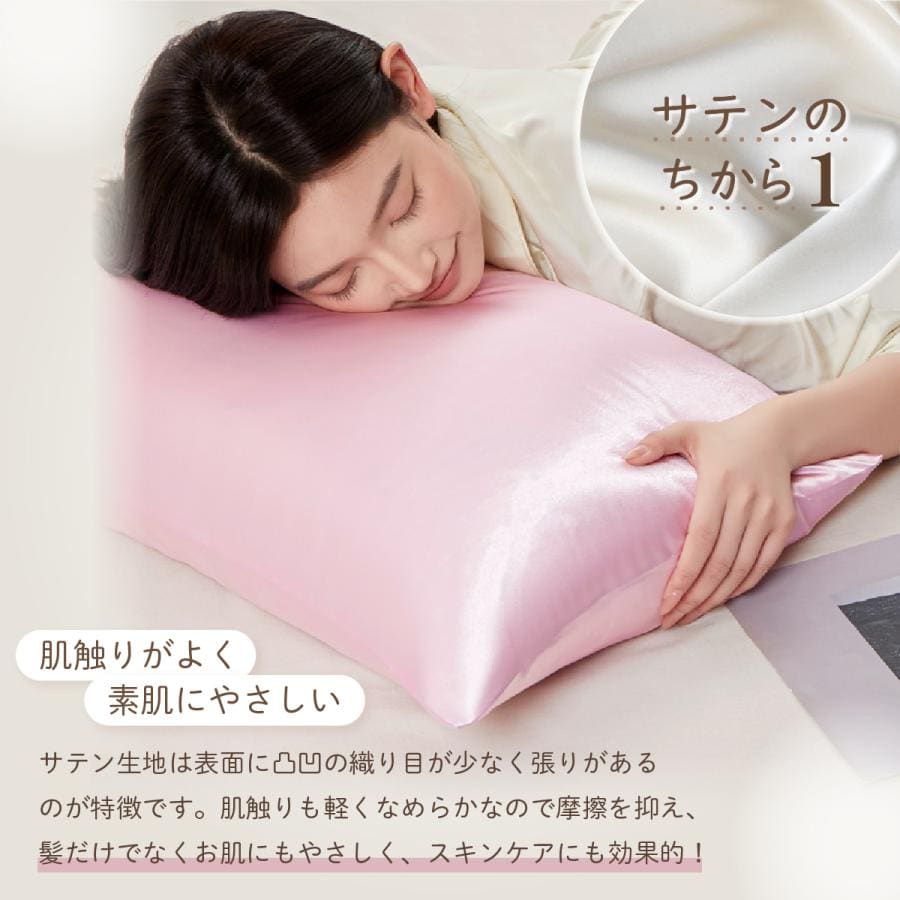【ネイビー/2枚セット】サテン枕カバー | 寝ている間に髪を守る♪摩擦軽減のサテン枕カバーででツヤ髪へ