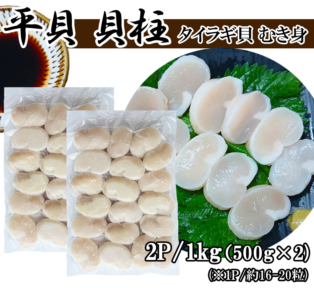 - 【日替わり数量限定】【計1kg/500g×2P】平貝貝柱 タイラギ貝(生食用)【先行チケット利用NG】