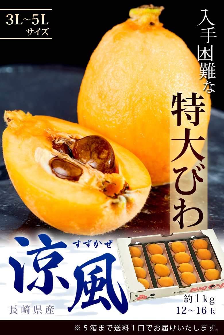 【予約受付】5/11~順次出荷【約250g×4P(12~16玉)/3~5L】長崎県産大粒びわ 涼風 | 希少な超大粒のびわ、涼風(すずかぜ)。【冷蔵】