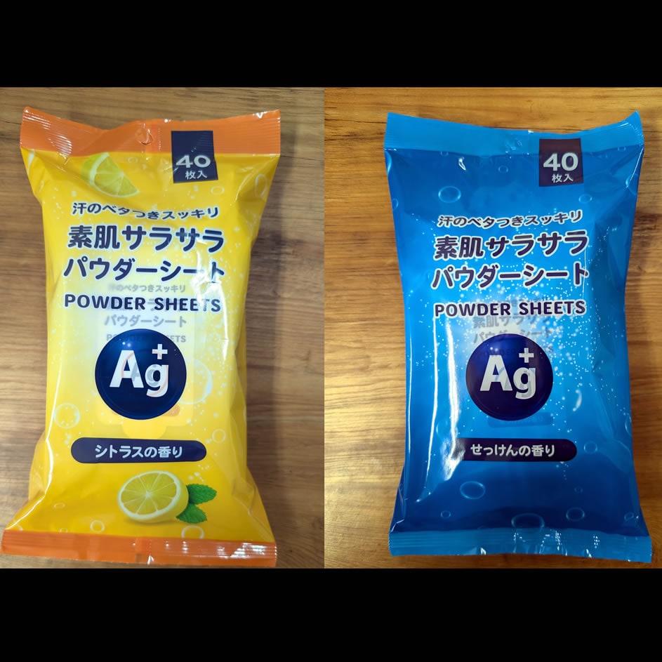 【日替わり数量限定】【合計6袋×40枚】素肌サラサラパウダーシート せっけんの香り3袋 & シトラスの香り3袋 | Ag+配合で、清潔感長持ち。いつでもサラサラ&安心!