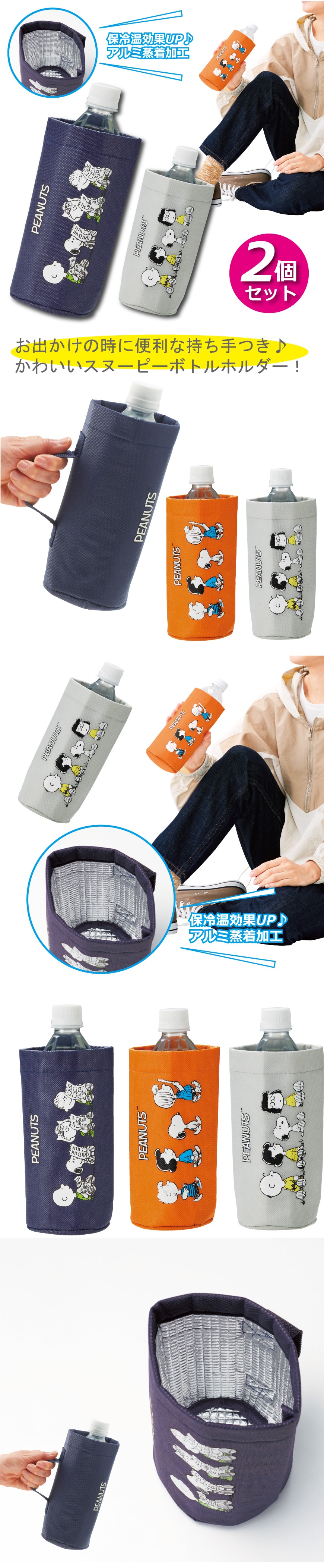 【日替わり数量限定】[2個セット]スヌーピー 持ち手つき保冷保温ボトルホルダー | 内側アルミ蒸着フィルム付きで、飲み物の温度をより長くキープ♪水滴の水濡れ防止にも◎