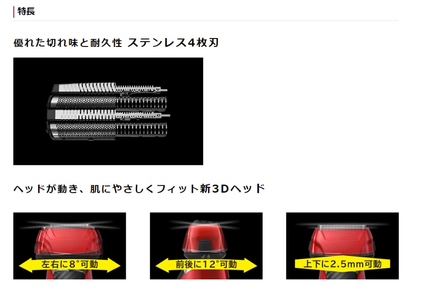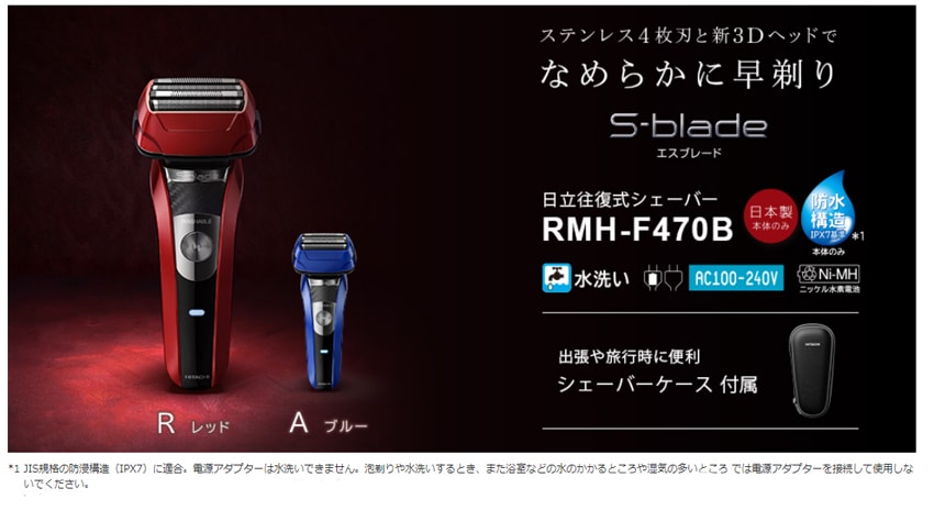 【日替わり数量限定】[レッド] 日立/エスブレード 往復式シェーバー (4枚刃/新3Dヘッド)/RMH-F470B(R) |シェーバーケース付属。ステンレス4枚刃と新3Dヘッドでなめらかに早剃り!
