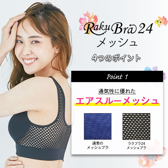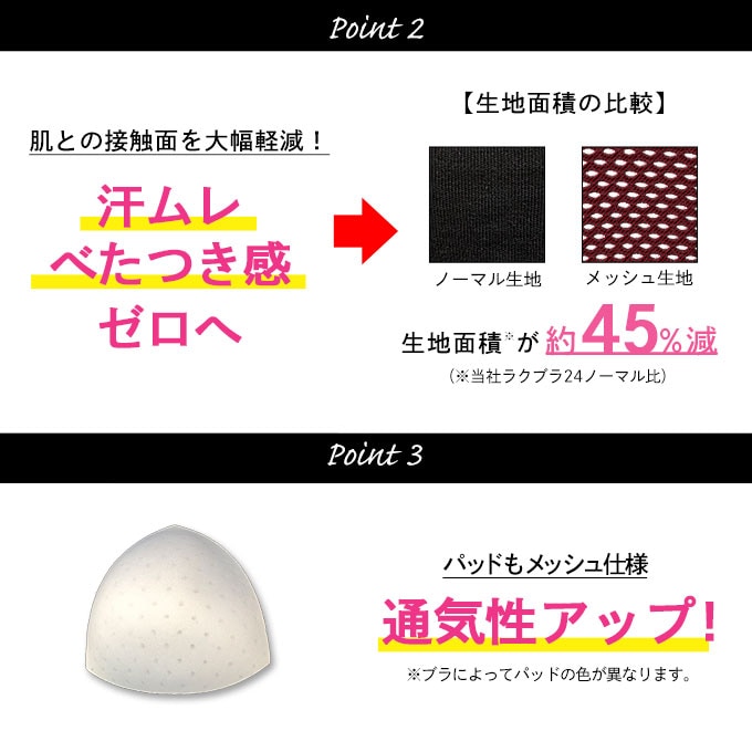 【日替わり数量限定】【2枚組 ブラック×ブラック / 3L-4L】ラクブラ24 メッシュ | 生地面積が約45%減!パッドもメッシュ仕様で通気性アップ!暑い日も快適な着け心地♪