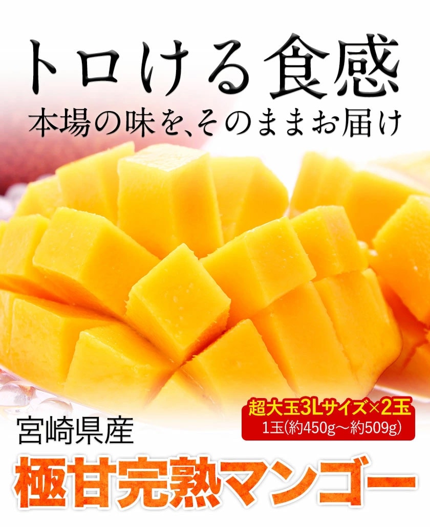 【2玉/3Lサイズ】本場宮崎県産 完熟マンゴー | "完熟"へのこだわりが生んだ!濃厚な味わい極甘マンゴー!
