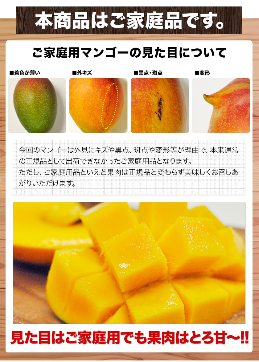 【1kg】本場宮崎県産 完熟マンゴー※ご家庭用(傷あり サイズ不選別) | "完熟"へのこだわりが生んだ!濃厚な味わい極甘マンゴー!