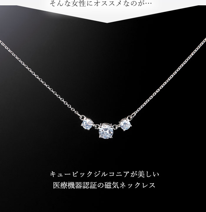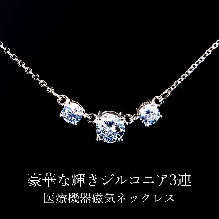 【日替わり数量限定】煌く「スリーストーン磁気ネックレス」両吊タイプ | ★豪華な輝きキュービックジルコニア3連2.15カラットがネックラインを美しく演出します。