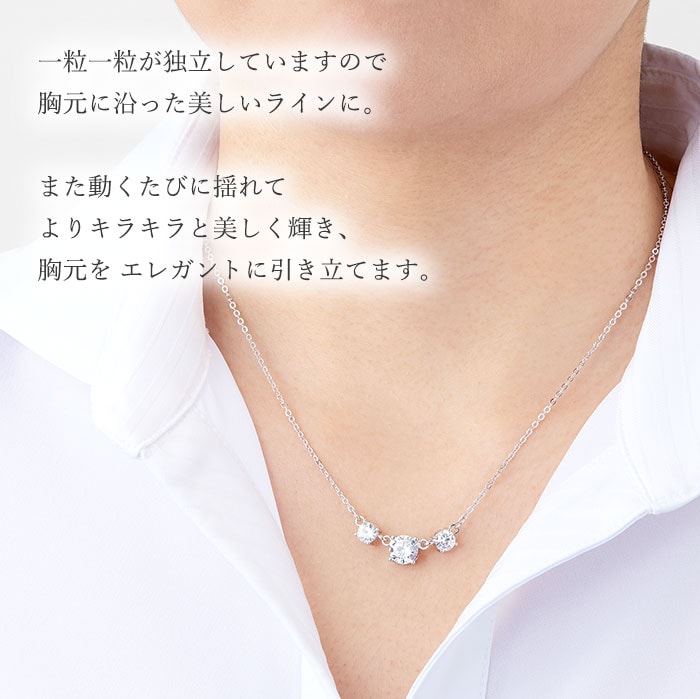 ★豪華な輝きキュービックジルコニア3連2.15カラットがネックラインを美しく演出します。
