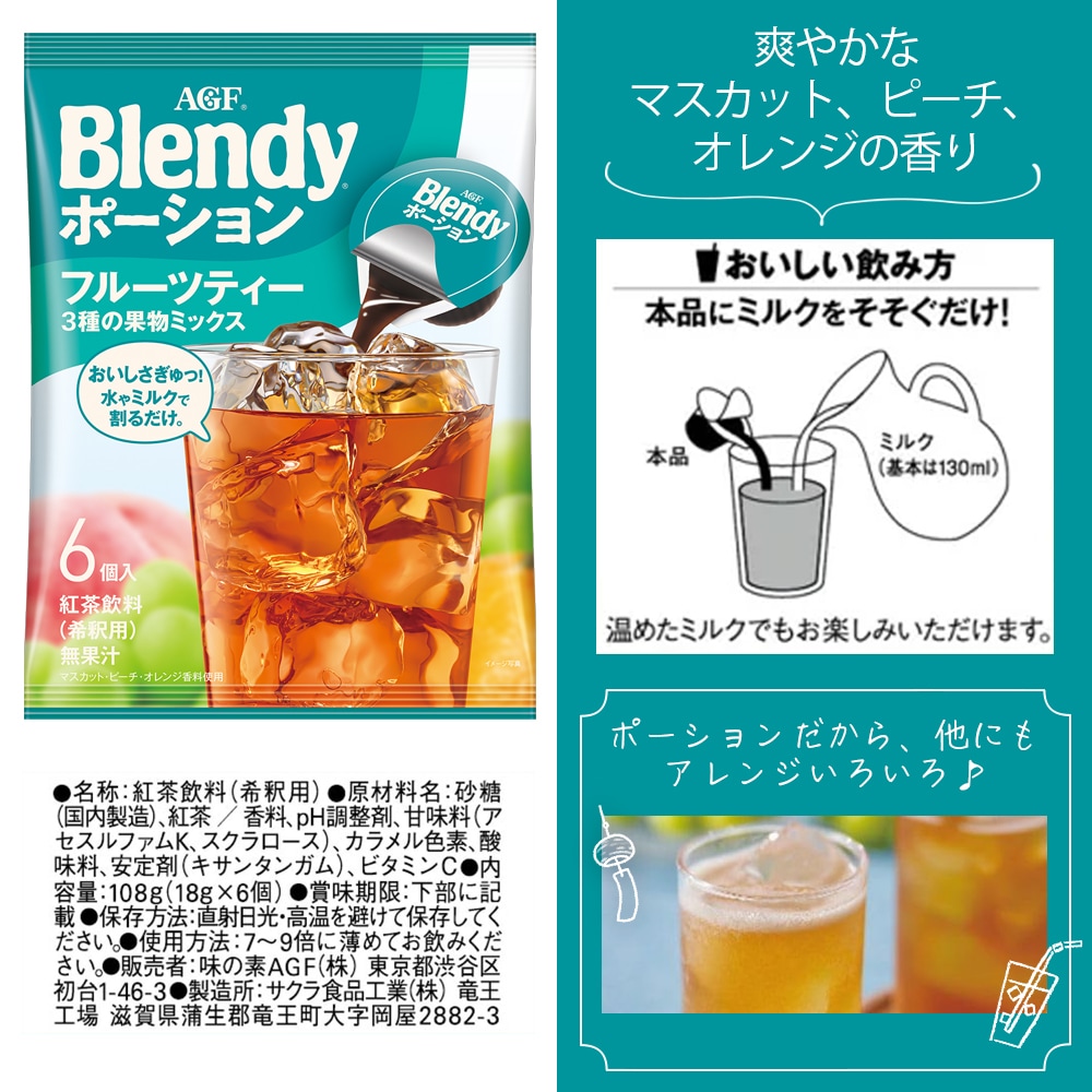 【計30個/6個×5袋】AGF ブレンディ ポーション フルーツティー3種の果物ミックス | 爽やかなマスカット、ピーチ、オレンジの香り、ほどよい甘み。