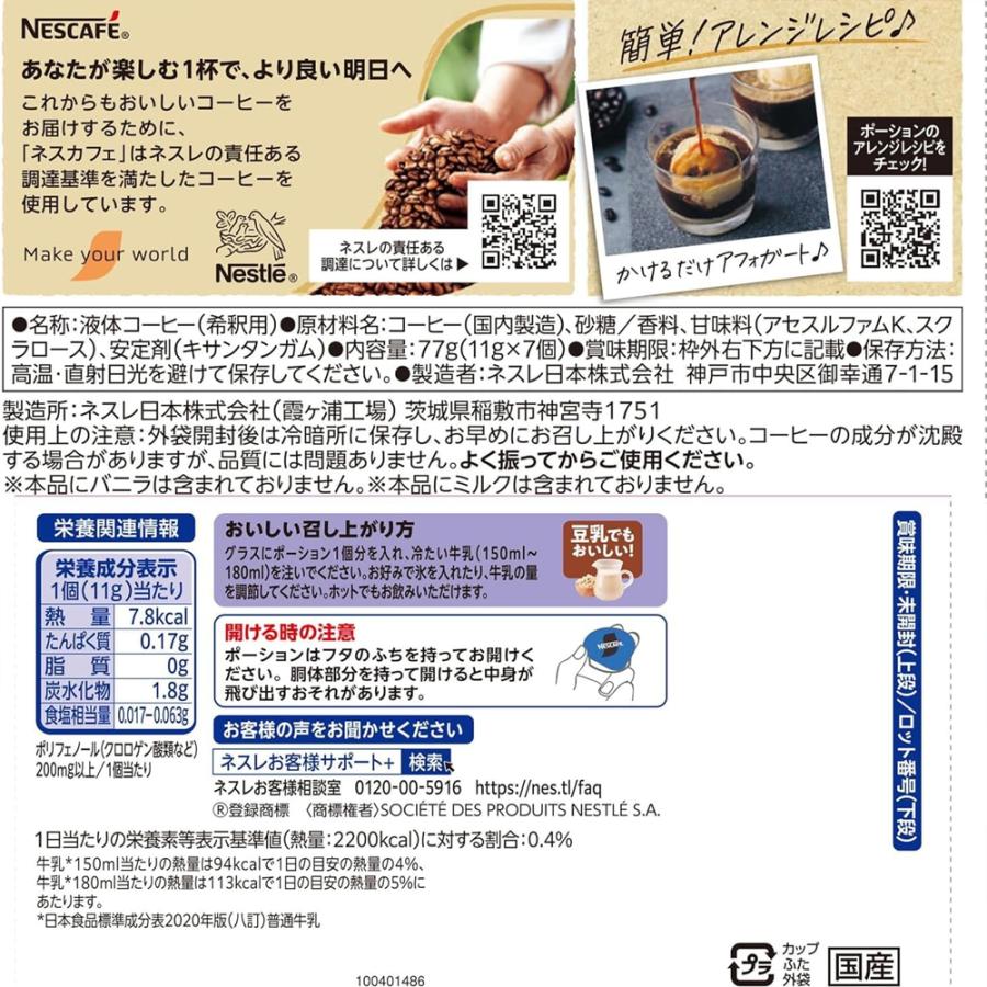 【11g×7個/6袋】ネスレ ネスカフェ ポーション バニララテ | 牛乳や氷で割るだけ!本格的な味わいが簡単に楽しめる!バニララテ