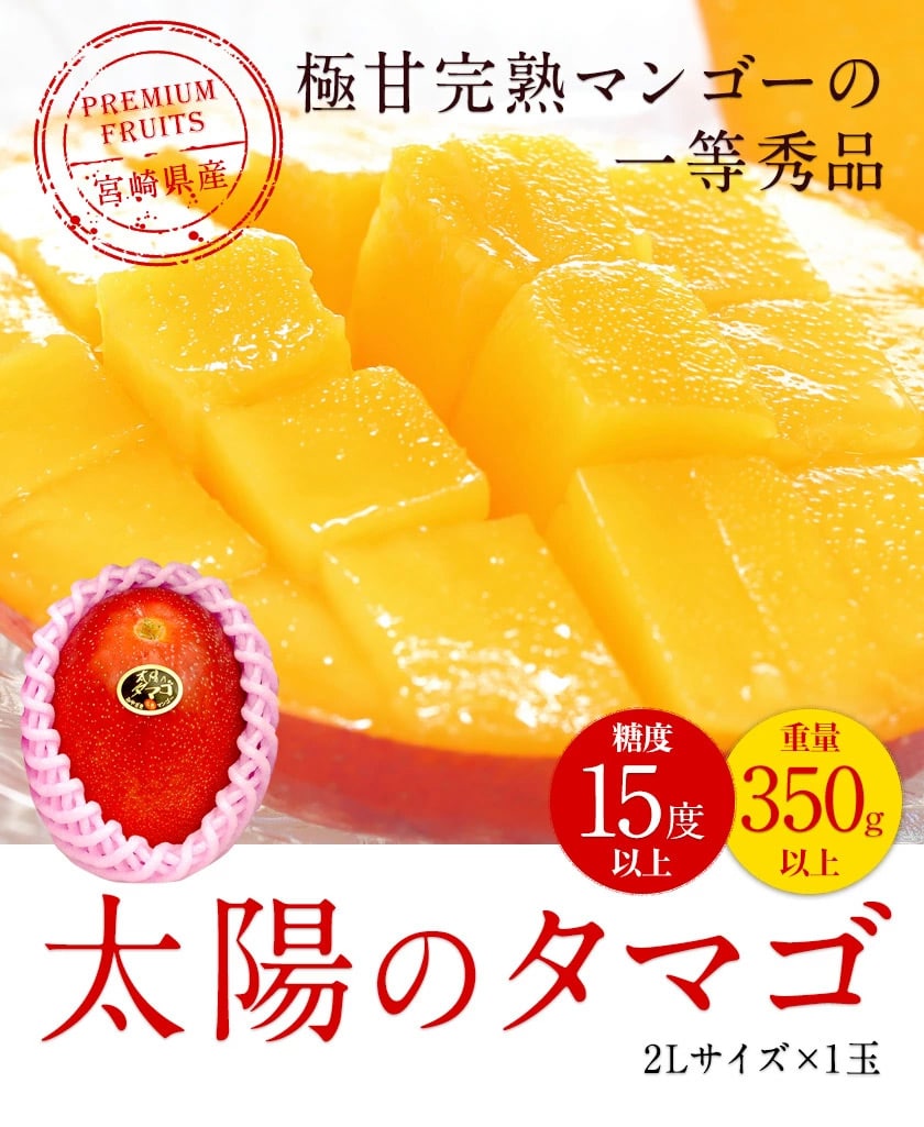 - 【1玉/2Lサイズ】本場宮崎県産 完熟マンゴー 太陽のタマゴ
