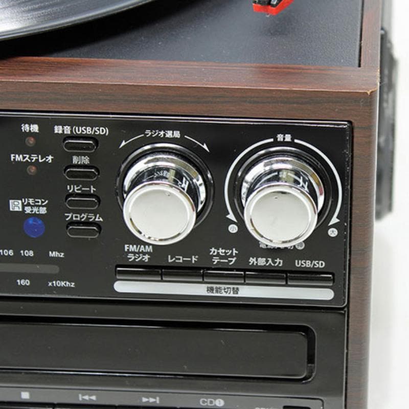 ・レコード、カセット、AM/FMラジオ、CD再生、CD書き込み、USB/SD再生、録音、外部入力