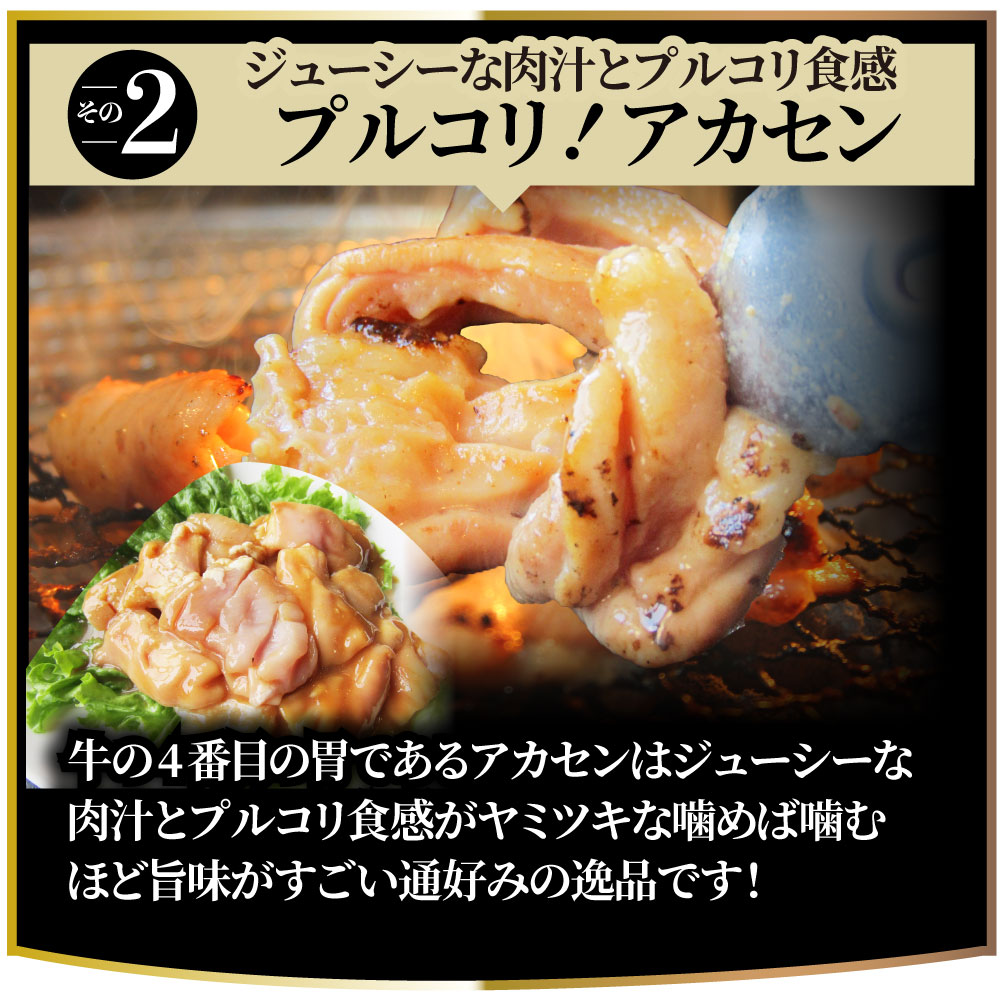 ・原材料/材質/素材:シマチョウ、豚ガツ、牛ギアラ、醤油、砂糖、リンゴ果汁、にんにく、本みりん、レモン果汁、植物油、ごま、玉ねぎエキス、生姜、ネギエキス、酵母エキス、コショー、唐辛子、調味料(アミノ酸等)、増粘剤(キサンタン)、みそ、アミノ酸液、ごま脂、醸造酢、香辛料、酒精(原材料の一部に小麦、大豆、りんご、ごま、豚を含む)