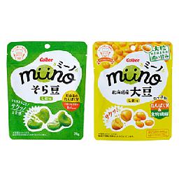 カルビーの「miino(ミーノ)」は、”豆まるごとのおいしさを、いつでもどこでもおいしく楽しめる私のおいしいお気に入り”というコンセプトのブランドです。
