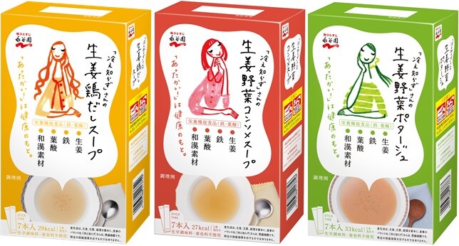 - 「冷え知らず」さんの生姜鶏だしスープ スティック/「冷え知らず」さんの生姜野菜コンソメスープ スティック/「冷え知らず」さんの生姜野菜ポタージュ スティック