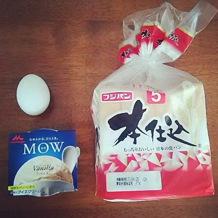 ・アイスをボールに移し、四つ切りにしたパンを浸す