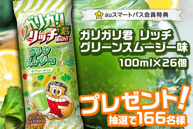 【auスマートパス会員特典】ガリガリ君リッチグリーンスムージー味100ml×26個を抽選で166名様プレゼント♪