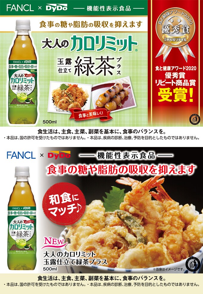 <機能性表示食品>食生活は、主食、主菜、副菜を基本に、食事のバランスを。カロリミットは(株)ファンケルの登録商標です。