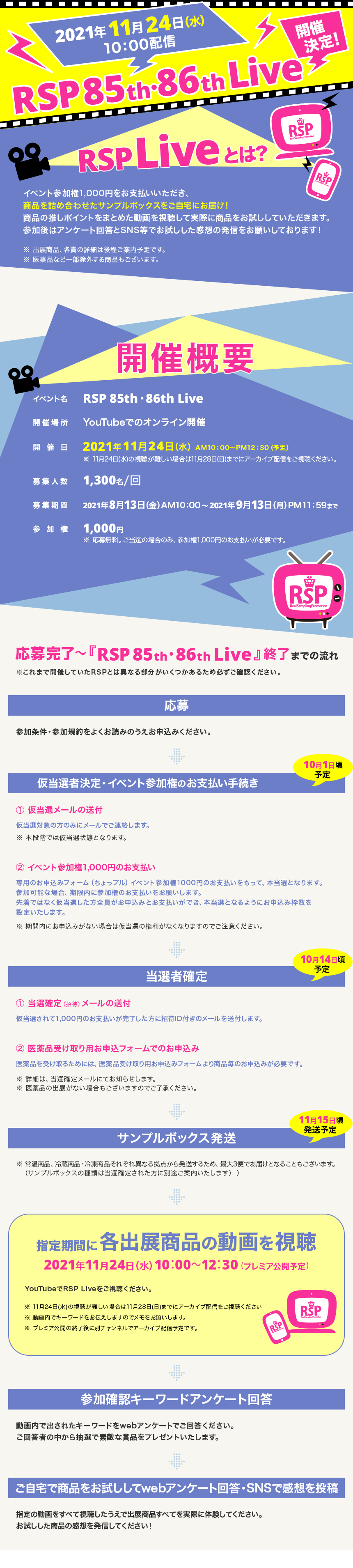 ※開催期間、お支払い費用は RSP 85th Live・RSP 86th Live に違いはございません。