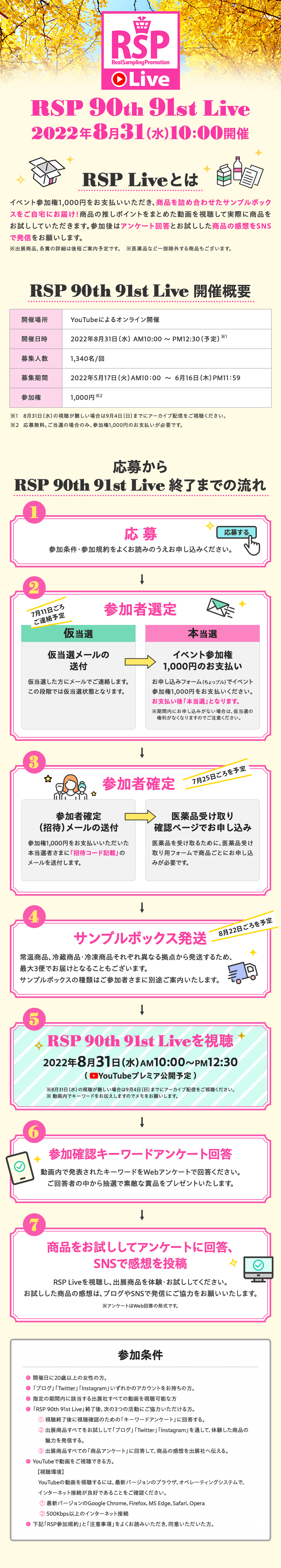 商品を詰め合わせたサンプルボックスをお届け!RSP 90th・91st Live 2022/8/31(水)配信