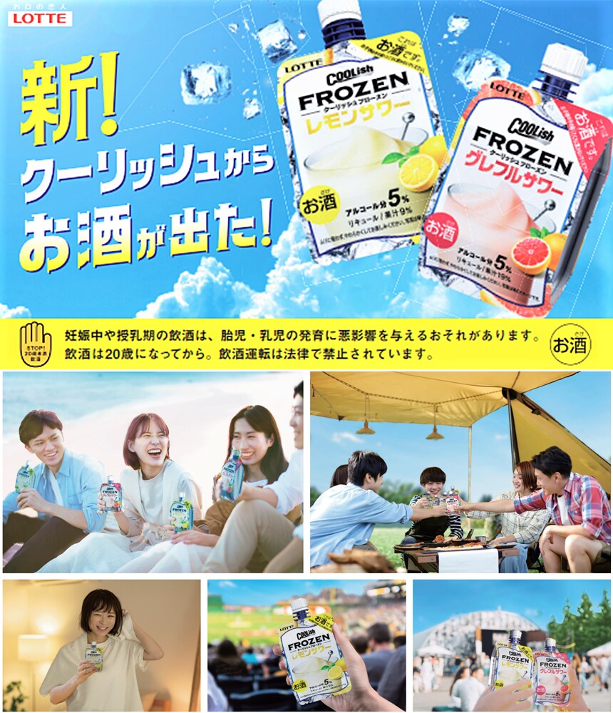 ジューシーなシャーベット仕立ての美味しさと氷点下の冷たさを体感でき、リキャップや簡便に捨てられるパウチ容器入りの爽快フローズングレフルサワー(お酒)
