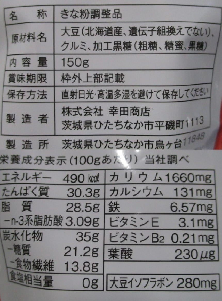 こだわりの直火焙煎きな粉にクルミと黒糖をブレンド、クルミに含まれるオメガ3脂肪酸や葉酸を手軽に摂取でき優しい甘さが特徴