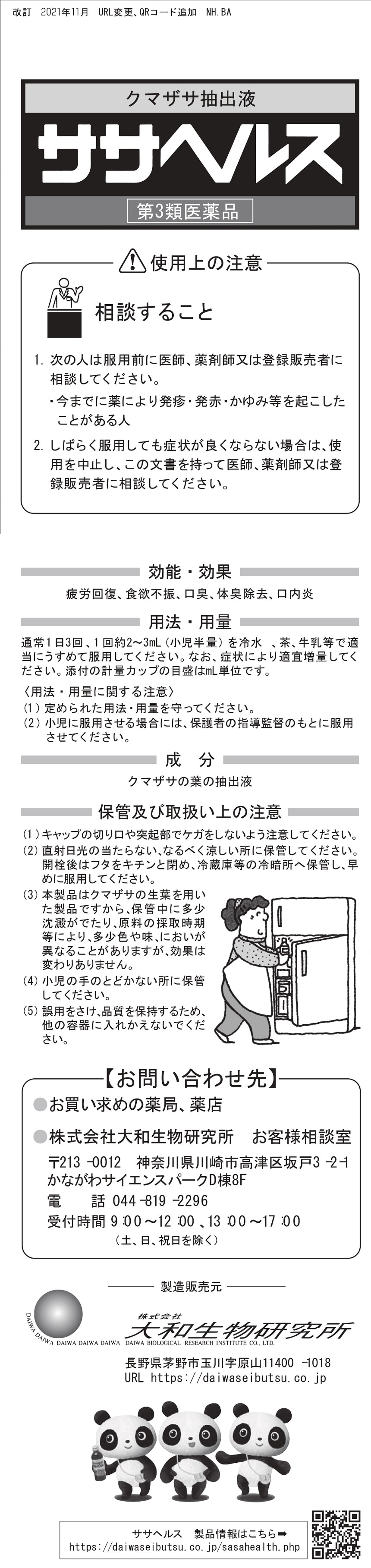【第3類医薬品】株式会社大和生物研究所 国産100%クマ笹エキス ササヘルス