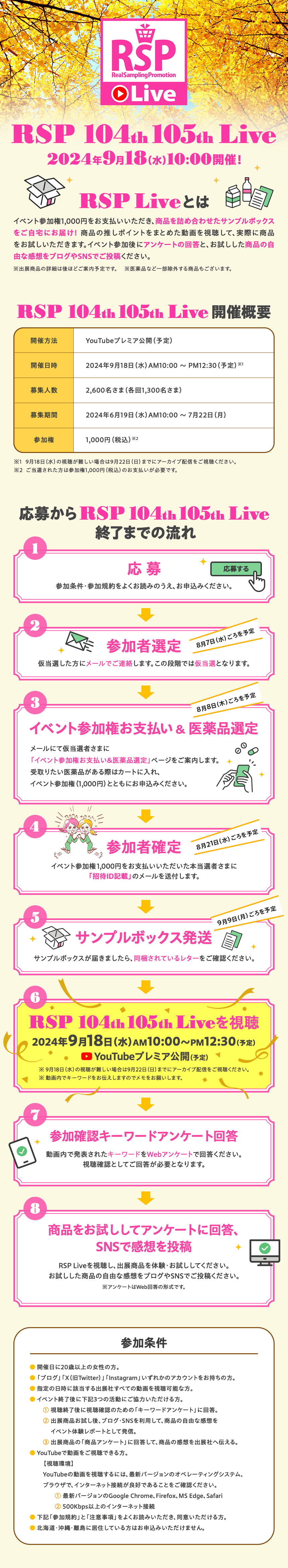 商品を詰め合わせたサンプルボックスをお届け!RSP 104th・105th Live 2024/9/18(水)配信