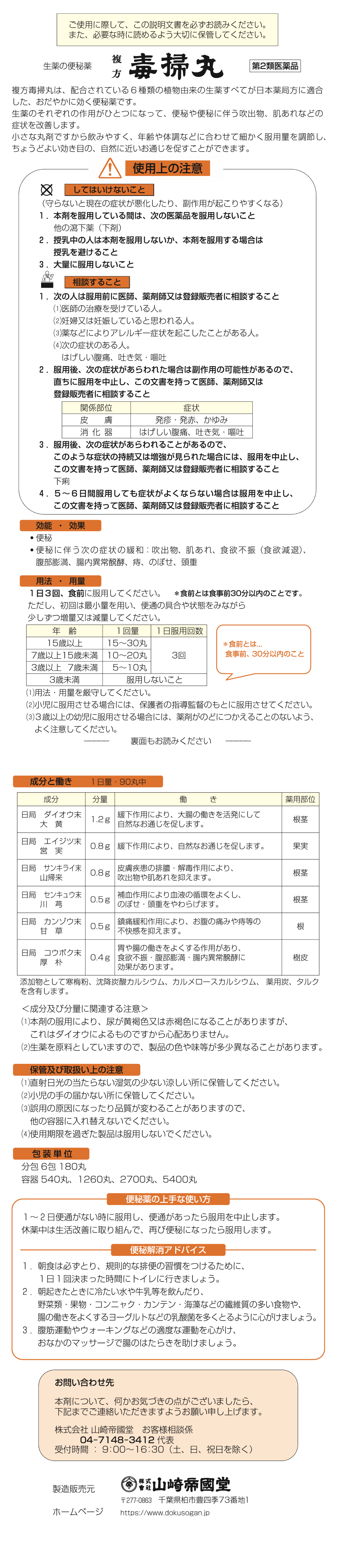 【第2類医薬品】株式会社 山崎帝國堂 複方毒掃丸 180丸 │ 6種類の生薬がおだやかに効く、小さな粒の便秘薬