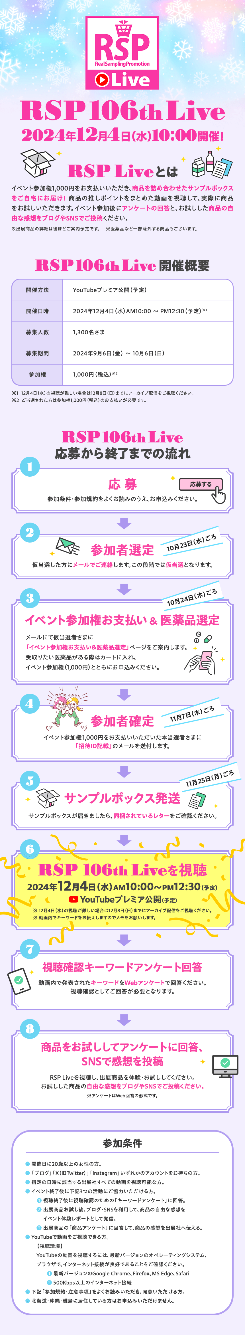 商品を詰め合わせたサンプルボックスをお届け!RSP 106th Live 2024/12/4(水)配信