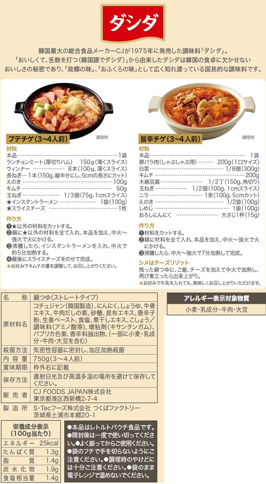 CJ FOODS JAPAN株式会社 ダシダ 本格鍋つゆ プデチゲの素 750g