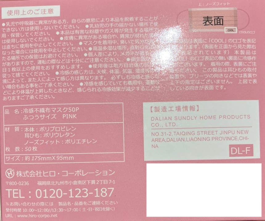 [計250枚]ヒロ・コーポレーション 冷感不織布マスク ピンク 50枚入 | 接触冷温感、最大熱吸収得度0.332!! 安心の不織布で、接触冷感!