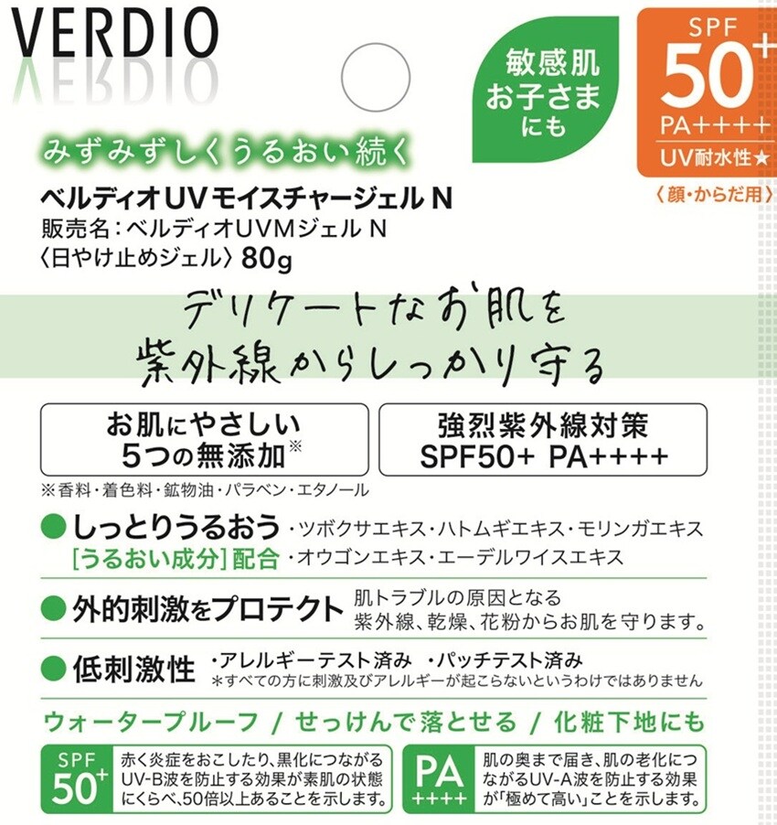 デリケートなお肌や敏感肌にも使える、みずみずしくうるおい続くエタノールフリーのジェルタイプUVです。