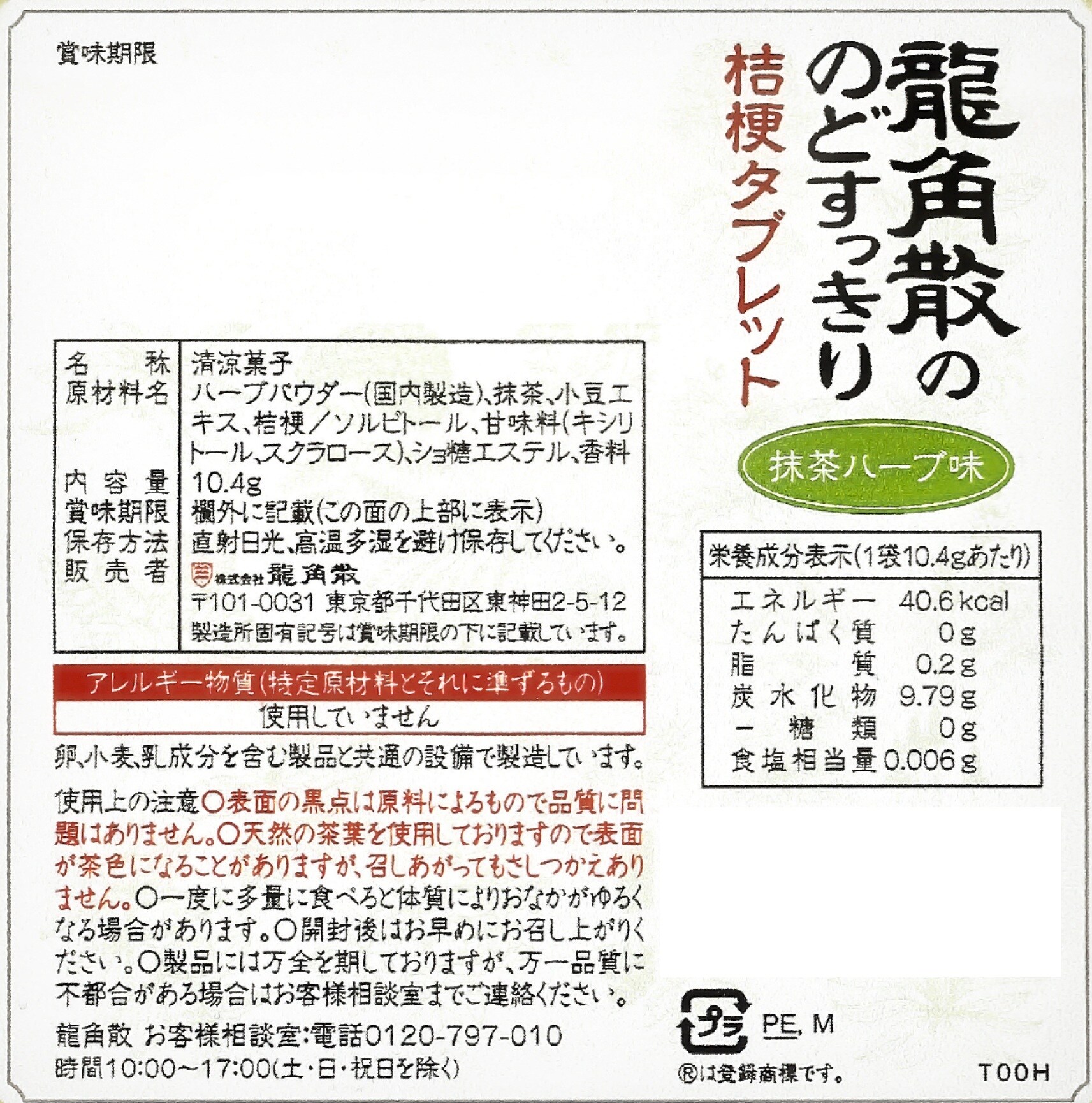 ・龍角散ののどすっきり桔梗タブレット 抹茶ハーブ味 10.4g×1個 - 参考サイト