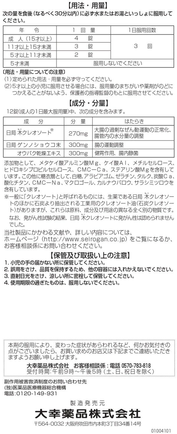 小さなポーチにも入る持ち運びしやすいコンパクトなサイズが特徴で、自然由来の主成分「木(もく)クレオソート」が 腸内の水分バランスを調整し、腸の運動を止めることなく正常化しますので、軟便、下痢、食あたり、水あたりなど様々なお腹トラブルに対応します。
