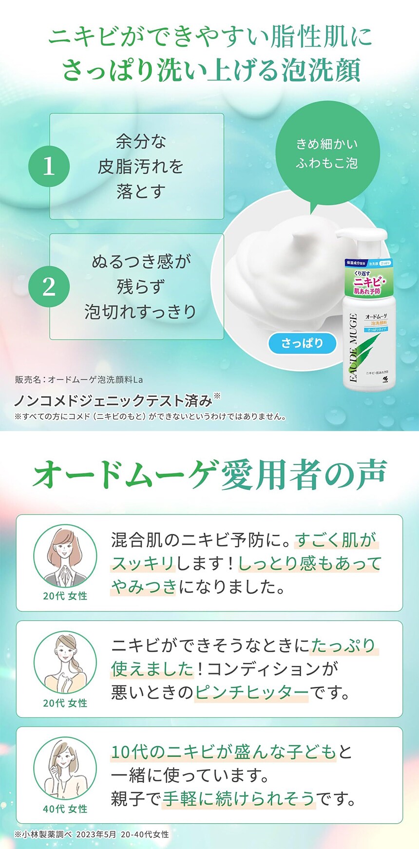 小林製薬株式会社 オードムーゲ 泡洗顔料さっぱり 150mL │ きめ細かい泡で余分な皮脂汚れを落としてニキビを防ぎ、さっぱりツルツル肌。