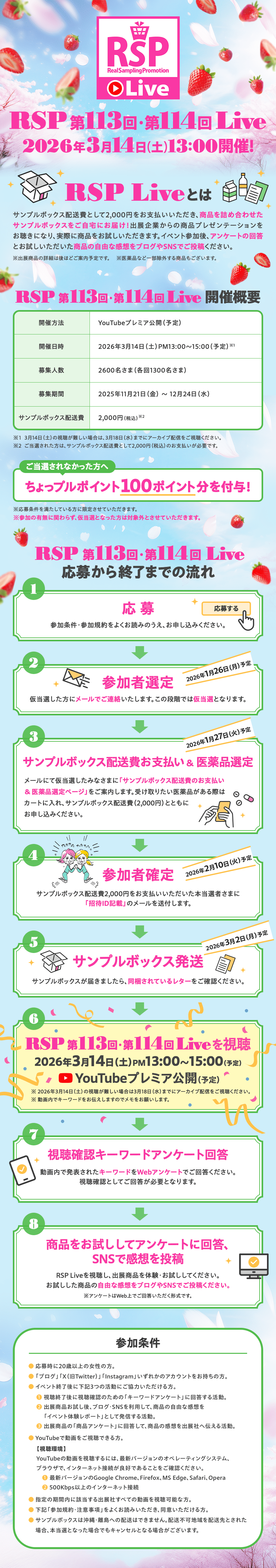 商品を詰め合わせたサンプルボックスをお届け!RSP 第113回・第114回 Live 2026/3/14(土)配信 |当選されなかった方へ100pt付与
