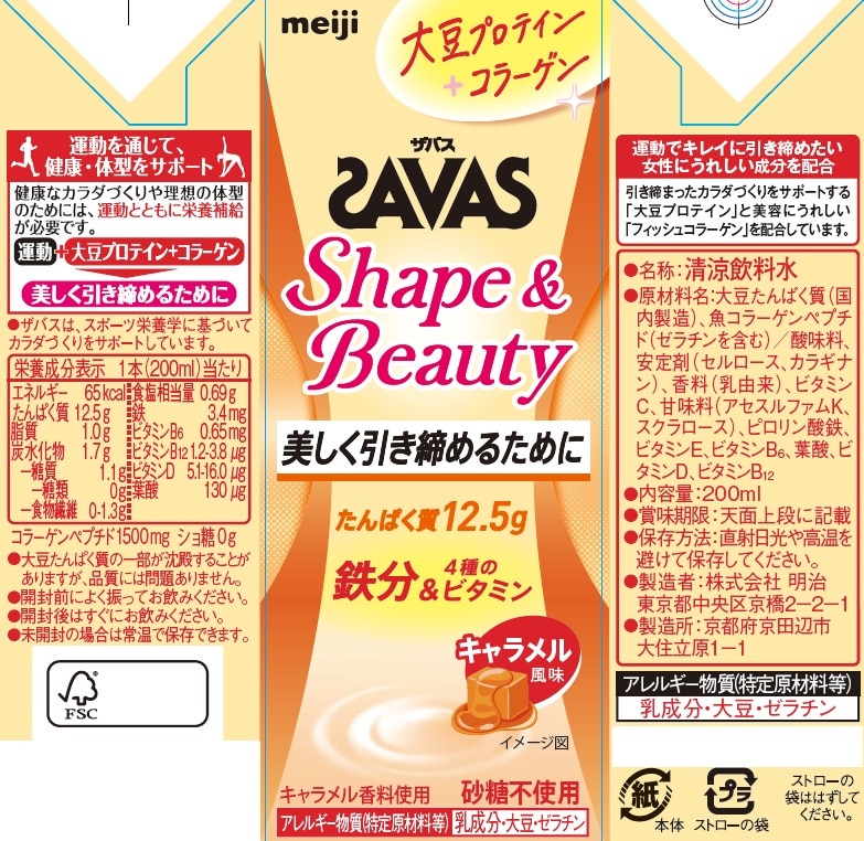株式会社明治 ザバス Shape&Beauty キャラメル風味 200ml │ 美しく引き締めたいカラダをサポートする、女性のためのプロテイン