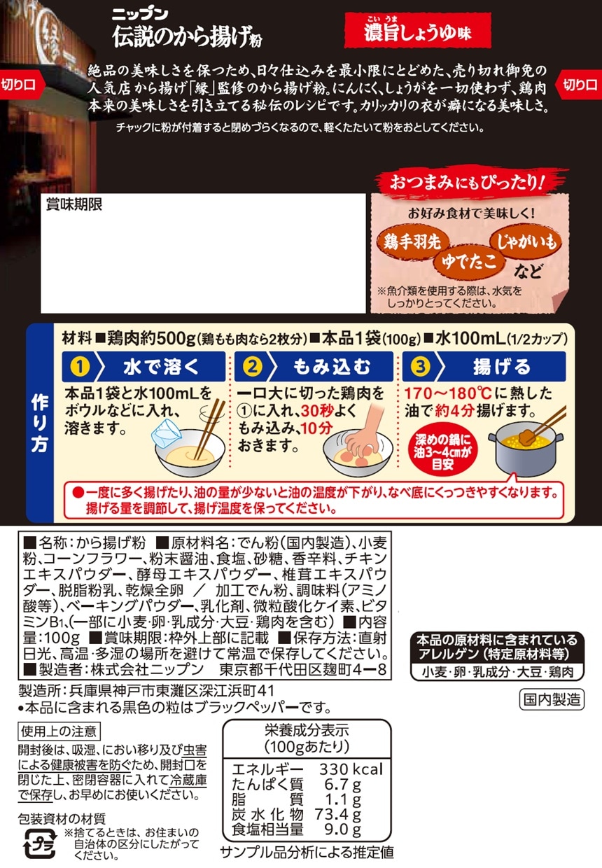 - ・ニップン 伝説のから揚げ粉 濃旨しょうゆ味 100g×1個