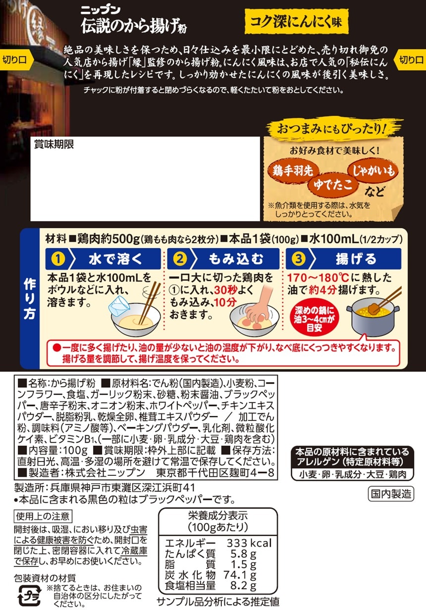 ・ニップン 伝説のから揚げ粉 コク深にんにく味 100g×1個 - 参考サイト