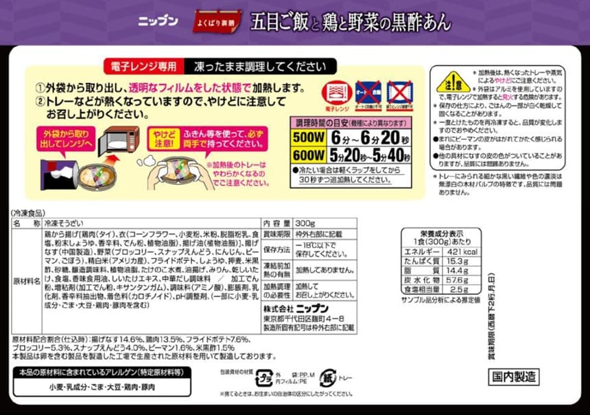 - ニップン よくばり御膳 五目ご飯と鶏と野菜の黒酢あん 300g