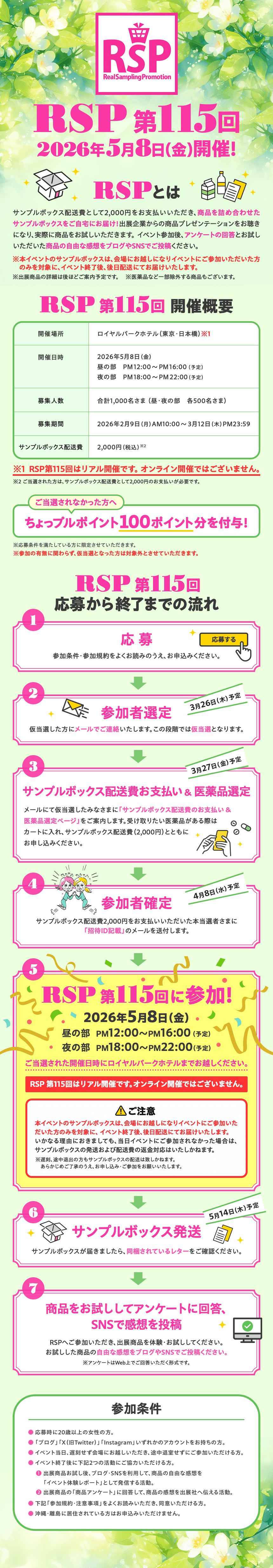 リアルイベントで開催決定!RSP 第115回 2026/5/8(金)開催※ご当選されなかった方へちょっプルポイント100ポイント分付与※